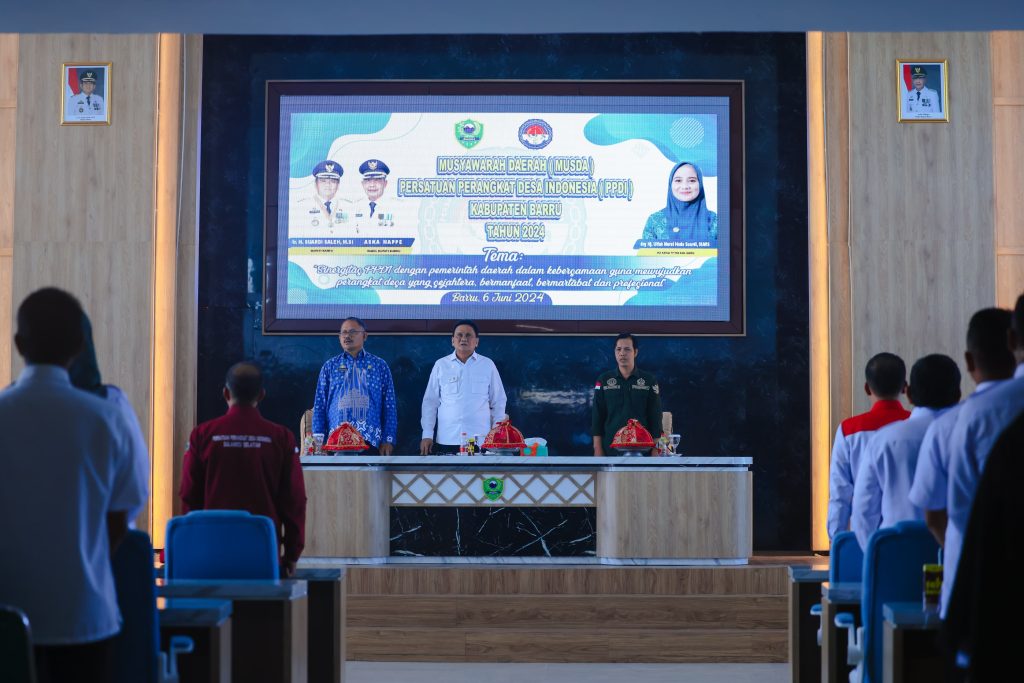 Bupati Barru Ir. H. Suardi Saleh, M.Si membuka secara resmi Musyawarah Daerah (MUSDA) Persatuan Perangkat Desa Indonesia (PPDI) Kabupaten Barru Tahun 2024 di Lantai 6 MPP Kantor Bupati Barru, Kamis (06/06/2024).