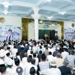 Prabowo yang mengenakan safari cokelat dan peci hitam itu tiba di lokasi pada pukul 10.44 WIB. Dia disapa para warga yang sudah menanti sejak pagi di jalan menuju sekolah.